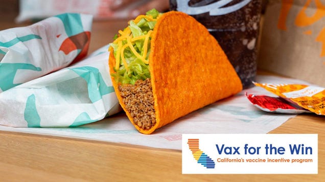 Source: Gizmodo – Taco Bell Giving Free Tacos to California Customers Who Get Vaccinated Against Covid-19