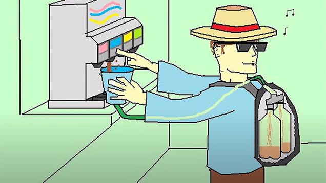 In 2008, GameFAQs user EpitaphILIP had an idea: what if, instead of buying a cup of soda at Taco Bell and merely drinking it, he bought a refillable cup, built a contraption leading from the cup to a container hidden in a messenger bag and proceeded to pour a whole ton of Mountain Dew.