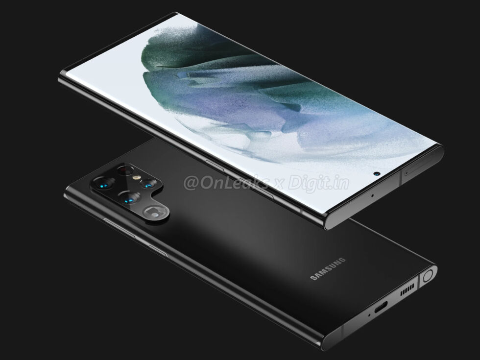 The Galaxy Note 22—no wait, the S22 Ultra?! Note the S-Pen oval on the bottom edge. [credit: