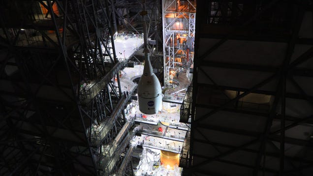 Like a cherry placed atop a delicious sundae, NASA technicians have successfully mounted the Orion spacecraft onto the Space Launch System rocket. It’s a major milestone, as the space agency prepares for the upcoming Artemis missions to the Moon.