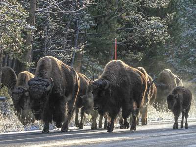 Photo: Bison rule the road at Yellowstone