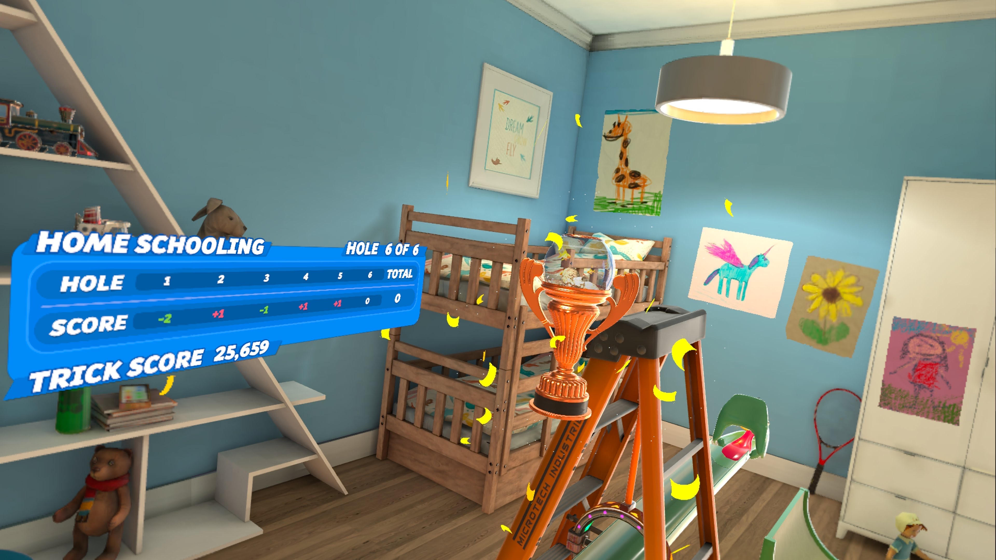 In VR Mode, House of Golf offers a series of themed 6-hole courses you unlock by scoring par or better on the prior course.
