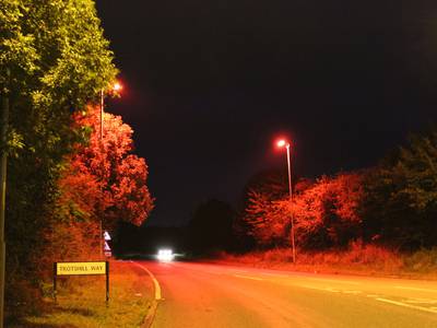 The red glowing street lights allow light-shy bats to cross the road.