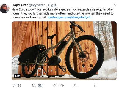 Source: TreeHugger – Study finds that e-bike riders get as much exercise as riders of regular bikes