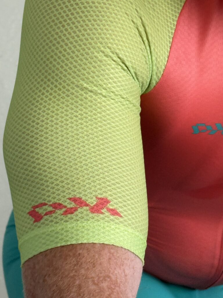 While this isn’t an indoor-specific jersey, it is a very breathable top that works well outdoors in summer heat as well as indoors on the trainer. The arms and side panels use a 3D mesh material that keeps you dry and cool without being so fragile that it breaks down in the wash (not an easy balance to strike!). The front and back use a denser but still lightweight perforated fabric that provides more coverage but still wicks sweat and allows airflow for drying.