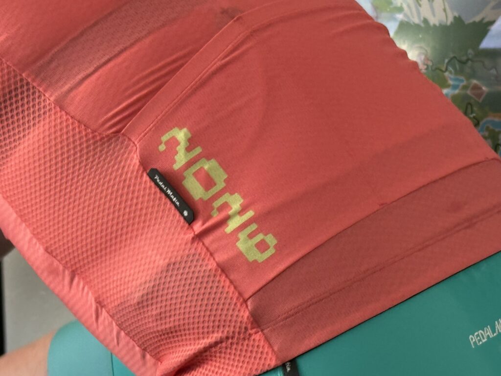 The Tour De Zwift 26 jersey, like the bibs, is based on Pedal Mafia’s “Core” line. Priced at $128USD, this is a well-made, indoor-friendly jersey with some nice finishing touches.